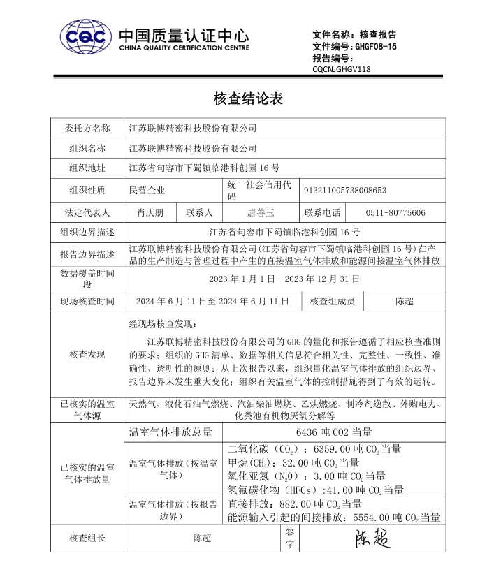 江蘇聯博精密科技股份有限公司核查報告